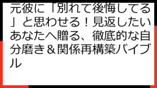 復縁占い・復縁相談 元彼に「別れて後悔してる」と思わせる!見返したいあなたへ贈る、徹底的な自分磨き&関係再構築バイブル 【元彼を後悔させる】魅力的な自分になるための究極ガイド 「別れてしまったけれど、元彼に『あの時、手放さなければよかった』と後悔させたい。」 そんな風に思ったことはありませんか? このブログ記事では、元彼を後悔させるために、あなたがどのように... 2025.08.25 復縁占い・復縁相談