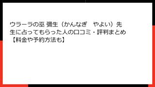 ウラーラ ウラーラの巫 彌生(かんなぎ やよい)先生に占ってもらった人の口コミ・評判まとめ【料金や予約方法も】 巫 彌生(かんなぎ やよい)先生の占いについて徹底解説 巫 彌生(かんなぎ やよい)先生は、チャット占いアプリ「ウラーラ」に所属する実力派の占い師です。霊感を活かした鑑定と、相談者に寄り添う温かみのあるアプローチで、多くの人々から信頼を集め... 2025.09.07 ウラーラ