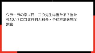 ウラーラ ウラーラの宰ノ目 コウ先生は当たる?当たらない?口コミ評判と料金・予約方法を完全調査 宰ノ目コウ先生:ウラーラの人気占い師の得意分野と鑑定方法を徹底解説 ウラーラに所属する占い師、宰ノ目コウ(さいのめ こう)先生は、鋭い直感と多様な占術を駆使して、相談者の悩みに寄り添う鑑定で知られています。恋愛や仕事、人間関係など、幅広い分... 2025.09.09 ウラーラ