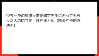 ウラーラ ウラーラの想流☆霊能鑑定先生に占ってもらった人の口コミ・評判まとめ【料金や予約方法も】 想流☆霊能鑑定:ウラーラの人気占い師の得意分野・占いメニュー・鑑定方法を徹底解説 占いアプリ「ウラーラ」に在籍する占い師の中でも、独特の霊能力で注目を集める想流(そうる)先生。霊感・霊視を駆使した鑑定で、相談者の悩みを深く読み解き、的確なア... 2025.09.10 ウラーラ