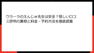 ウラーラ ウラーラのサクラコ先生の評判はなぜ高い?料金や予約方法もわかりやすく解説 サクラコ先生|ウラーラ所属の占い師の得意分野・占いメニュー・鑑定方法を徹底解説 ウラーラに所属する占い師、サクラコ先生は、恋愛や人間関係の悩みを解決に導くことで多くの相談者から支持を集めています。この記事では、サクラコ先生の得意とする占い分... 2025.09.01 ウラーラ