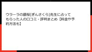ウラーラ ウラーラの銀桜(ぎんさくら)先生に占ってもらった人の口コミ・評判まとめ【料金や予約方法も】 銀桜(ぎんさくら)先生の占い:得意分野・メニュー・鑑定方法を徹底解説 ウラーラに所属する占い師、銀桜(ぎんさくら)先生は、その鋭い洞察力と温かみのある鑑定スタイルで多くの相談者から支持を集めています。恋愛や仕事、人生の岐路に立つ人々に対して... 2025.09.07 ウラーラ