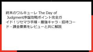 RPG 終末のワルキューレ The Day of Judgment序盤攻略ポイント完全ガイド!リセマラ手順・最強キャラ・招待コード・課金要素をレビューと共に解説 『終末のワルキューレ The Day of Judgment』攻略ガイド:ゲーム概要と初心者向けのコツ 『終末のワルキューレ The Day of Judgment』(以下、終ワルDOJ)は、累計発行部数1800万部を誇る大人気漫画・ア... 2025.09.07 RPGアクション