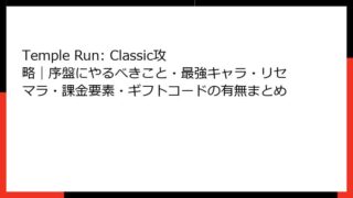 アクション Temple Run: Classic攻略|序盤にやるべきこと・最強キャラ・リセマラ・課金要素・ギフトコードの有無まとめ Temple Run: Classicの魅力と攻略ガイド:初心者から上級者まで楽しめるエンドレスランナー Temple Run: Classicは、スマートフォン向けのアクションゲームとして2011年にリリースされて以来、世界中で愛され... 2025.09.08 アクション