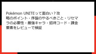 アクション Pokémon UNITEって面白い?攻略のポイント・序盤のやるべきこと・リセマラの必要性・最強キャラ・招待コード・課金要素をレビューで検証 Pokémon UNITE:スマホで楽しむ戦略バトルMOBAの魅力と攻略法 Pokémon UNITEは、ポケモンの世界観を活かした無料のスマホアプリ(iOS/Android対応)で、多人数参加型のオンライン対戦ゲームです。2021年に... 2025.09.11 アクションストラテジー