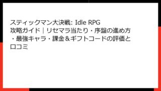 アドベンチャー スティックマン大決戦: Idle RPG攻略ガイド|リセマラ当たり・序盤の進め方・最強キャラ・課金&ギフトコードの評価と口コミ スティックマン大決戦: Idle RPG 攻略ガイド - ゲーム概要と初心者が押さえるべきポイント 「スティックマン大決戦: Idle RPG」は、シンプルなビジュアルと戦略的なゲームプレイで人気の放置系アクションRPGです。プレイヤー... 2025.09.07 アドベンチャー