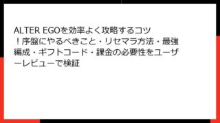 アドベンチャー ALTER EGOを効率よく攻略するコツ!序盤にやるべきこと・リセマラ方法・最強編成・ギフトコード・課金の必要性をユーザーレビューで検証 ALTER EGO: スマホゲームアプリの概要と攻略ガイド 「ALTER EGO(オルタエゴ)」は、2018年12月にカラメルカラムからリリースされた、ユニークな自分探しタップゲームです。精神分析とアドベンチャー要素を融合させ、プレイヤ... 2025.09.08 アドベンチャーシミュレーション