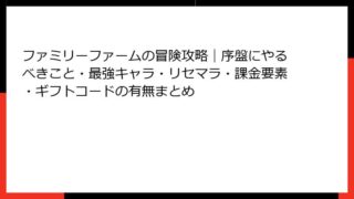 アドベンチャー ファミリーファームの冒険攻略|序盤にやるべきこと・最強キャラ・リセマラ・課金要素・ギフトコードの有無まとめ ファミリーファームの冒険:南国島の癒しと冒険が融合したスマホゲーム こんにちは、ゲーム好きのブロガーです! 今日は、スマホアプリの新定番として話題の「ファミリーファームの冒険」を徹底レビューします。このゲームは、未開の南国島を探検しなが... 2025.09.11 アドベンチャーシミュレーション