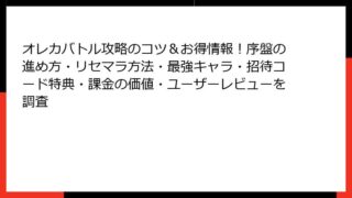 カード オレカバトル攻略のコツ&お得情報!序盤の進め方・リセマラ方法・最強キャラ・招待コード特典・課金の価値・ユーザーレビューを調査 オレカバトル スマホゲームアプリの概要と攻略ガイド:初心者向けのポイントと序盤の進め方 「オレカバトル」は、コナミが開発したトレーディングカードアーケードゲームを原作とするスマホゲームアプリです。プレイヤーは自分だけのオリジナルモンスタ... 2025.09.08 カード