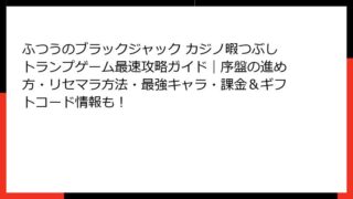 カード ふつうのブラックジャック カジノ暇つぶしトランプゲーム最速攻略ガイド|序盤の進め方・リセマラ方法・最強キャラ・課金&ギフトコード情報も! ふつうのブラックジャック カジノ暇つぶしトランプゲーム:概要と攻略ガイド 「ふつうのブラックジャック カジノ暇つぶしトランプゲーム」は、シンプルかつ直感的な操作で楽しめるスマホ向けブラックジャックアプリです。カジノの定番カードゲームであ... 2025.09.09 カードカジノ