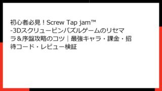 カジュアル 初心者必見!Screw Tap jam™-3Dスクリューピンパズルゲームのリセマラ&序盤攻略のコツ|最強キャラ・課金・招待コード・レビュー検証 Screw Tap Jam™ - 3Dスクリューピンパズルゲームの概要と攻略ガイド Screw Tap Jam™ - 3Dスクリューピンパズルゲームは、3Dモデルを使ったユニークなパズルゲームで、プレイヤーは色付きのピンやネジを戦略的に... 2025.09.08 カジュアルパズル