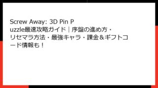 カジュアル Screw Away: 3D Pin Puzzle最速攻略ガイド|序盤の進め方・リセマラ方法・最強キャラ・課金&ギフトコード情報も! Screw Away: 3D Pin Puzzle - 脳を刺激する3Dピンパズルの魅力に迫る Screw Away: 3D Pin Puzzleは、2024年にリリースされた人気のスマホパズルゲームです。WONDER GROUPが開発... 2025.09.11 カジュアルパズル
