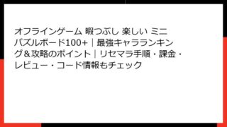 カジュアル 隣の席はだれ? – 暇つぶし論理パズルゲーム序盤攻略ポイント完全ガイド!リセマラ手順・最強キャラ・招待コード・課金要素をレビューと共に解説 隣の席はだれ? - 暇つぶし論理パズルゲームの魅力に迫る! こんにちは、ゲーム好きのブロガーです。今日は、最近話題のスマホアプリ「隣の席はだれ? - 暇つぶし論理パズルゲーム」について詳しくお話しします。このゲームは、論理的思考を刺激す... 2025.09.04 カジュアルパズル