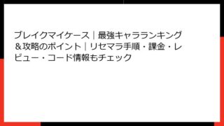 ミュージック ブレイクマイケース|最強キャラランキング&攻略のポイント|リセマラ手順・課金・レビュー・コード情報もチェック ブレイクマイケース:ゲーム概要と攻略ガイド~初心者向けのポイントと序盤の進め方 「ブレイクマイケース(ブレマイ)」は、音楽とパズルを融合させた新感覚のスマホゲームアプリで、プレイヤーを魅了する独特の世界観と魅力的なキャラクターが特徴です... 2025.09.08 ミュージック
