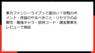 ミュージック 東方ファンシーライブって面白い?攻略のポイント・序盤のやるべきこと・リセマラの必要性・最強キャラ・招待コード・課金要素をレビューで検証 東方ファンシーライブ:幻想郷のメロディを指先で奏でるリズムゲームの魅力 東方Projectのファンなら一度は夢見たことがあるはず──あの名曲たちをリズムゲームで楽しむ体験を。『東方ファンシーライブ』は、そんな願いを叶える個人制作のスマホ... 2025.09.09 ミュージック