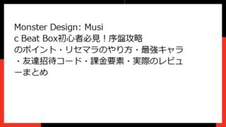 ミュージック Monster Design: Music Beat Box初心者必見!序盤攻略のポイント・リセマラのやり方・最強キャラ・友達招待コード・課金要素・実際のレビューまとめ Monster Design: Music Beat Boxの魅力に迫る!スマホゲームの完全ガイド こんにちは、ゲーム好きの皆さん! 今日のテーマは、最近話題のスマホアプリ「Monster Design: Music Beat Box」... 2025.09.10 ミュージック