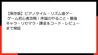 ミュージック 【保存版】ピアノタイル – リズム音ゲー ゲーム初心者攻略|序盤のやること・最強キャラ・リセマラ・課金&コード・レビューまで検証 ピアノタイル - リズム音ゲー ゲームの魅力と攻略ガイド スマホゲームの中でも中毒性が高く、シンプルながら奥深いリズムゲームとして人気の「ピアノタイル - リズム音ゲー ゲーム」。黒いタイルをタイミングよくタップして美しいピアノメロディ... 2025.09.11 ミュージック