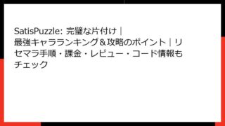 シミュレーション SatisPuzzle: 完璧な片付け|最強キャラランキング&攻略のポイント|リセマラ手順・課金・レビュー・コード情報もチェック SatisPuzzle: 完璧な片付け - ゲーム概要と攻略ガイド 「SatisPuzzle: 完璧な片付け」は、リラックスしながら整理整頓を楽しめるスマホゲームアプリです。ASMR要素を取り入れたカジュアルなパズルゲームで、プレイヤー... 2025.09.06 シミュレーション