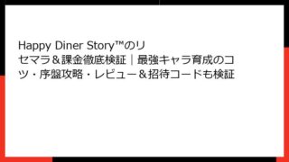 シミュレーション Happy Diner Story™のリセマラ&課金徹底検証|最強キャラ育成のコツ・序盤攻略・レビュー&招待コードも検証 Happy Diner Story™ 攻略ガイド:ゲーム概要と序盤攻略のポイント Happy Diner Story™は、レストラン経営をテーマにしたタイムマネジメント型のスマホゲームアプリです。プレイヤーは小さなレストランからスタート... 2025.09.08 シミュレーション