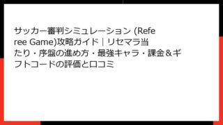 シミュレーション サッカー審判シミュレーション (Referee Game)攻略ガイド|リセマラ当たり・序盤の進め方・最強キャラ・課金&ギフトコードの評価と口コミ サッカー審判シミュレーション (Referee Game) で審判の醍醐味を味わおう! サッカーファンなら一度は憧れたことがあるはず――ピッチ上でホイッスルを吹き、選手たちの運命を決める審判の役割。今回紹介するのは、そんな夢を叶えてくれ... 2025.09.12 シミュレーション