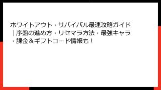 シミュレーション ホワイトアウト・サバイバル最速攻略ガイド|序盤の進め方・リセマラ方法・最強キャラ・課金&ギフトコード情報も! ホワイトアウト・サバイバル:極寒の氷河期で生き残るサバイバルストラテジー 極寒の氷河期が訪れた世界で、人類の生存を賭けた壮大なストラテジーゲーム、それが『ホワイトアウト・サバイバル』です。このスマホアプリは、資源管理、施設建設、英雄育成... 2025.09.13 シミュレーションストラテジー