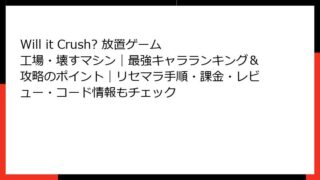 ストラテジー Will it Crush? 放置ゲーム工場・壊すマシン|最強キャラランキング&攻略のポイント|リセマラ手順・課金・レビュー・コード情報もチェック Will it Crush? 放置ゲーム工場・壊すマシン:爽快粉砕放置ゲームの魅力に迫る 皆さん、スマホで気軽に遊べる放置ゲームが大好きですか? 今日は、そんな中でも特に中毒性が高く、ストレス解消にぴったりのゲーム「Will it Cr... 2025.09.09 ストラテジー