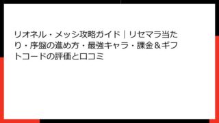リオネル・メッシ攻略ガイド|リセマラ当たり・序盤の進め方・最強キャラ・課金&ギフトコードの評価と口コミ リオネル・メッシをフィーチャーしたスマホゲーム「Lionel Messi Shooting Game」の完全ガイド サッカー界のレジェンド、リオネル・メッシの魅力を存分に味わえるスマホゲームアプリとして、「Lionel Messi Sh... 2025.09.13