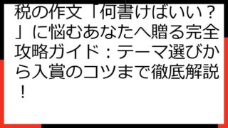 【税の作文完全攻略】テーマ選びから書き方、入賞のコツまで徹底解説!「何書けばいい?」を解決 税の作文、何を書けばいいか悩んでいませんか? この記事では、そんな悩みを解決するために、テーマ選びから書き方、さらに入賞のコツまで、税の作文に関する...