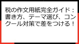【税の作文用紙完全攻略】書き方、構成、テーマ選びまで徹底解説! この記事では、税の作文用紙を前にして、何を書けば良いのか、どう書けば高評価を得られるのか悩んでいるあなたに向けて、税の作文を成功させるための秘訣を徹底的に解説します。 作文用紙...