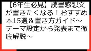読書感想文 【6年生必見】読書感想文が書きたくなる!おすすめ本15選&書き方ガイド~テーマ設定から発表まで徹底解説~ 【6年生必見】読書感想文が書きたくなる!おすすめ本15選&書き方ガイド 小学校生活最後の年となる6年生の皆さん、こんにちは。 読書感想文の宿題に頭を悩ませていませんか。 「どんな本を選べばいいの?」「どうやって感想を書けばいいの?」 そんな... 2025.08.20 読書感想文