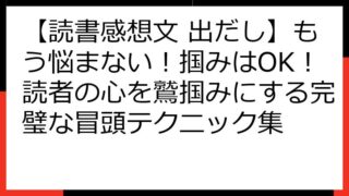読書感想文 【読書感想文 出だし】もう悩まない!掴みはOK!読者の心を鷲掴みにする完璧な冒頭テクニック集 【読書感想文の書き出し】もう悩まない!掴みはOK!読者の心を鷲掴みにする完璧な冒頭テクニック集 「読書感想文の出だし」で、あなたの文章は大きく左右されます。 せっかく素晴らしい内容の本を読んだのに、冒頭で読者の心をつかめなければ、その感動も... 2025.08.20 読書感想文