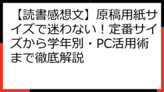 読書感想文 【読書感想文】原稿用紙サイズで迷わない!定番サイズから学年別・PC活用術まで徹底解説 【決定版】読書感想文の原稿用紙サイズ、これで迷わない!種類・選び方・書き方まで徹底解説 読書感想文を書く際、原稿用紙のサイズ選びに悩んでいませんか?。 「どのサイズが一番書きやすいの?」 「学年によって違うの?」 「そもそも、原稿用紙のサイ... 2025.08.20 読書感想文