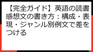 読書感想文 【完全ガイド】英語の読書感想文の書き方:構成・表現・ジャンル別例文で差をつける 【完全ガイド】英語の読書感想文を極める!構成・表現・例文で完璧に書き上げる方法 英語の読書感想文に苦手意識をお持ちですか?. この記事では、そんなあなたの悩みを解消し、自信を持って英語で感想文を書けるようになるための秘訣を、専門的な視点から... 2025.08.20 読書感想文