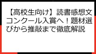 読書感想文 【高校生向け】読書感想文コンクール入賞へ!題材選びから推敲まで徹底解説 【高校生必見】読書感想文コンクールで入賞を狙う!基本から応用まで徹底攻略ガイド 高校生向けの読書感想文コンクールで、どうすれば入賞できるのか。 そんな悩みを抱えるあなたへ。 この記事では、数々のコンクールで実績のある専門家が、読書感想文の書... 2025.08.20 読書感想文