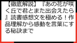 読書感想文 【徹底解説】『あの花が咲く丘で君とまた出会えたら』読書感想文を極める!作品理解から感動を言葉にする秘訣まで 【徹底解説】『あの花が咲く丘で君とまた出会えたら』読書感想文を極める!感動を言葉にするための完全ガイド このブログ記事では、「あの花が咲く丘で君とまた出会えたら」の読書感想文を、より深く、より感動的に書くための秘訣を、徹底的に解説します。 ... 2025.08.12 読書感想文