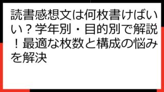読書感想文 読書感想文は何枚書けばいい?学年別・目的別で解説!最適な枚数と構成の悩みを解決 読書感想文、何枚書けばいい?学年別・目的別の最適な枚数と構成の秘訣 読書感想文の「枚数」に悩んでいませんか? 「指定された枚数に達しない」「逆に書きすぎてしまう」といったお悩みは、多くの方が抱えるものです。 本書では、小学校低学年から大学生... 2025.08.12 読書感想文