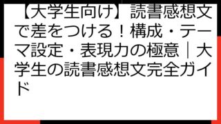 読書感想文 【大学生向け】読書感想文で差をつける!構成・テーマ設定・表現力の極意|大学生の読書感想文完全ガイド 【大学生必見】読書感想文を劇的にレベルアップさせる!構成・書き方・テーマ設定の極意 この記事では、読書感想文に苦手意識を持つ大学生の皆さんが、その評価を大きく向上させるための秘訣を、構成・書き方・テーマ設定といった多角的な視点から徹底解説し... 2025.08.12 読書感想文