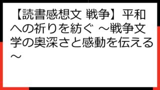読書感想文 【読書感想文 戦争】平和への祈りを紡ぐ ~戦争文学の奥深さと感動を伝える~ 【読書感想文 戦争】平和への祈りを紡ぐ ~ 戦争文学の奥深さと感動を伝える ~ このブログ記事では、「読書感想文 戦争」というテーマに深く向き合い、戦争文学が持つ言葉の力、体験者の声、そして平和へのメッセージに焦点を当てていきます。 戦争文... 2025.08.12 読書感想文