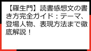 読書感想文 【羅生門】読書感想文の書き方完全ガイド:テーマ、登場人物、表現方法まで徹底解説! 【羅生門】読書感想文の書き方完全ガイド:テーマ、登場人物、伏線まで徹底解説! 芥川龍之介の傑作「羅生門」。 その奥深い世界観と登場人物たちの葛藤は、読者に強烈な印象を与えます。 このブログ記事では、読書感想文で差をつけるための、作品の核心に... 2025.08.20 読書感想文