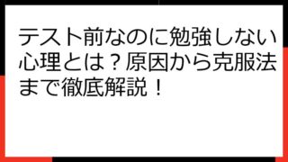 勉強嫌い・勉強しない テスト前なのに勉強しない心理とは?原因から克服法まで徹底解説! テスト前なのに勉強しない!その「やらない」心理と根本解決法 テストが近づいているのに、なぜか勉強が手につかない。 そんな経験はありませんか。 「やらなきゃ」とは分かっているのに、体が動かない。 その背後には、あなたの無意識に隠された心理が働... 2025.08.13 勉強嫌い・勉強しない
