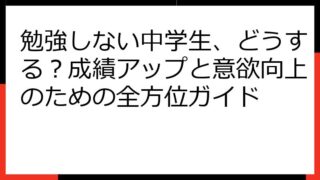 勉強嫌い・勉強しない 勉強しない中学生、どうする?成績アップと意欲向上のための全方位ガイド 【決定版】勉強しない中学生、どうする?保護者・本人必見!成績アップへの道筋 「うちの子、どうして勉強しないんだろう…」 「このままじゃ、進路や将来が心配…」 そんな悩みを抱える保護者の方、そして「勉強が苦手」「やる気が出ない」と感じている中... 2025.08.13 勉強嫌い・勉強しない