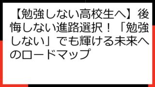 勉強嫌い・勉強しない 【勉強しない高校生へ】後悔しない進路選択!「勉強しない」でも輝ける未来へのロードマップ 【進路に悩む君へ】勉強しない高校生が後悔しない進路選択をするためのロードマップ 「勉強が苦手」「将来何をしたいか分からない」そんな悩みを抱えている高校生の皆さんへ。 「勉強しない」という現状から、どのように進路を選んでいけば良いのか、漠然と... 2025.08.14 勉強嫌い・勉強しない