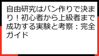 自由研究 自由研究はパン作りで決まり!初心者から上級者まで成功する実験と考察:完全ガイド 【自由研究 パン作り】小学生から本格派まで!成功するパン作りの実験と考察:科学的アプローチでパンの奥深さを探求 パン作りは、科学と創造性が融合した、とても奥深い世界です。 今回の自由研究では、単にパンを作るだけでなく、その過程で起こる様々な... 2025.08.25 自由研究