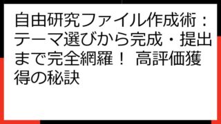 自由研究 自由研究ファイル作成術:テーマ選びから完成・提出まで完全網羅! 高評価獲得の秘訣 自由研究ファイル完全攻略ガイド:見やすく、分かりやすく、高評価を獲得する秘訣 自由研究、何から手を付けたらいいか迷っていませんか? 特に自由研究ファイルは、研究の成果をまとめ、評価を左右する重要な要素です。 。 このガイドでは、自由研究ファ... 2025.08.25 自由研究