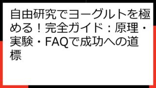 自由研究 自由研究でヨーグルトを極める!完全ガイド:原理・実験・FAQで成功への道標 ヨーグルト自由研究完全攻略!成功への道標:原理から応用、実験方法、結果考察まで徹底解説 ヨーグルトをテーマにした自由研究で、最高の成果を出したいあなたへ。 この記事では、ヨーグルトの基本的な原理から、実験方法、そして結果の考察まで、自由研究... 2025.08.25 自由研究