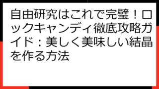 自由研究 自由研究はこれで完璧!ロックキャンディ徹底攻略ガイド:美しく美味しい結晶を作る方法 【自由研究】ロックキャンディ徹底攻略ガイド:科学の目で見る結晶の美しさと作り方 ロックキャンディ、それはまるで宝石のような砂糖菓子。 でも、ただ甘くて美味しいだけではありません。 実は、ロックキャンディ作りは、科学の不思議を体験できる、最高... 2025.08.25 自由研究