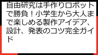 自由研究 自由研究は手作りロボットで勝負!小学生から大人まで楽しめる製作アイデア、設計、発表のコツ完全ガイド 小学生から大人まで!自由研究で差がつく手作りロボット製作完全ガイド:アイデア、設計、製作、発表まで徹底解説 夏休みの自由研究、何を作ろうか悩んでいませんか? 今年は、自分で作ったロボットで、周りのみんなを驚かせちゃいましょう! このガイドで... 2025.08.25 自由研究