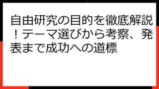 自由研究 自由研究の目的を徹底解説!テーマ選びから考察、発表まで成功への道標 自由研究、目的を徹底解剖!成功に導くテーマ選びから考察の深め方まで 自由研究に取り組むにあたって、「何のためにやるんだろう?」と疑問に思ったことはありませんか? 自由研究は、単なる夏休みの宿題ではありません。 自分の興味関心を追求し、自主的... 2025.08.25 自由研究