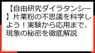 自由研究 【自由研究ダイラタンシー】片栗粉の不思議を科学しよう!実験から応用まで、現象の秘密を徹底解説 【自由研究】ダイラタンシーの不思議!片栗粉の秘密を徹底解剖!~科学の面白さに触れる体験学習~ このブログ記事では、夏休みの自由研究のテーマとして人気の「ダイラタンシー」について、専門的な視点から分かりやすく解説します。片栗粉と水で作れる不思... 2025.08.20 自由研究