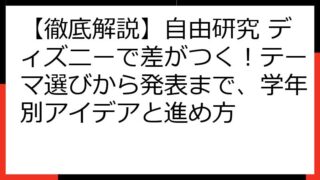 自由研究 【徹底解説】自由研究 ディズニーで差がつく!テーマ選びから発表まで、学年別アイデアと進め方 【徹底解説】「自由研究 ディズニー」で差をつける!テーマ選びから発表まで完全ガイド ディズニーは、子供たちの創造力と知的好奇心を刺激する宝庫です。 「自由研究 ディズニー」というテーマで、どのような研究ができるのか? テーマの選び方から、具... 2025.08.20 自由研究